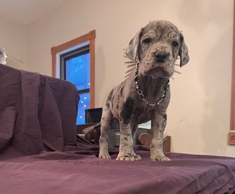 “Puppies are raised in our home with children and other dogs. We use Puppy Culture Protocols and begin early neurological stimulation on day 3 of life through day 16 and focus heavily on socialization and new experiences. Garrow Danes are fully health tested per OFA guidelines including Penn-hip, OFA hip, OFA Heart with echo, OFA Thyroid and OFA eyes, Color testing and IMGD. We are always open to phone calls and Facetime videos. We update on our pups with pictures and weights weekly plus. 500.00 deposit once application is completed/approved, contracted is signed and puppy is chosen.”