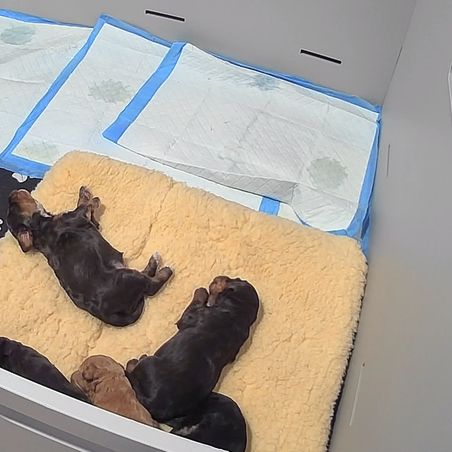 Second step of working on potty training has started! Once the puppies begin to get use to the box pellets will be added 👏