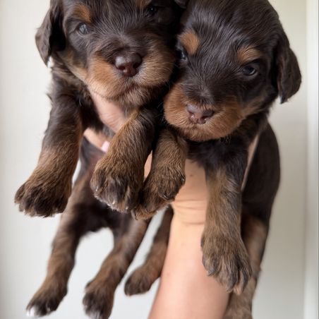 Our puppies include miniature and medium sizes. Sizes will vary depending on the parent dogs.