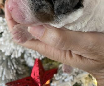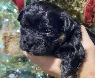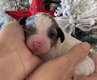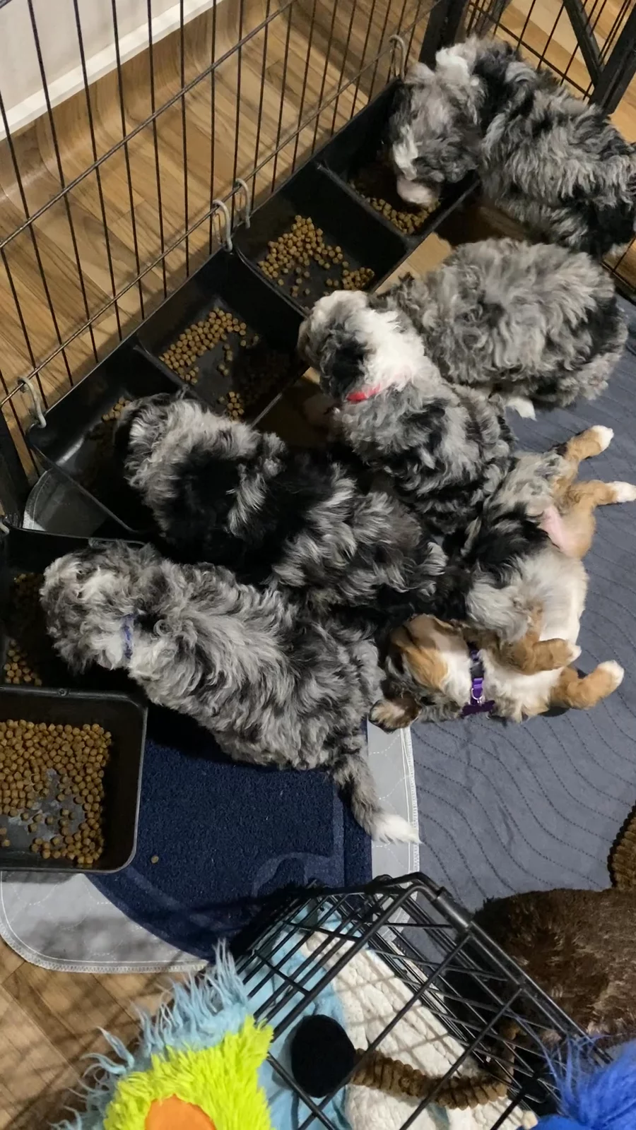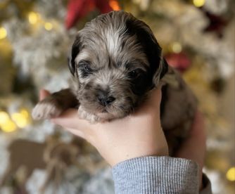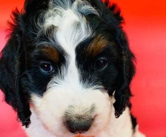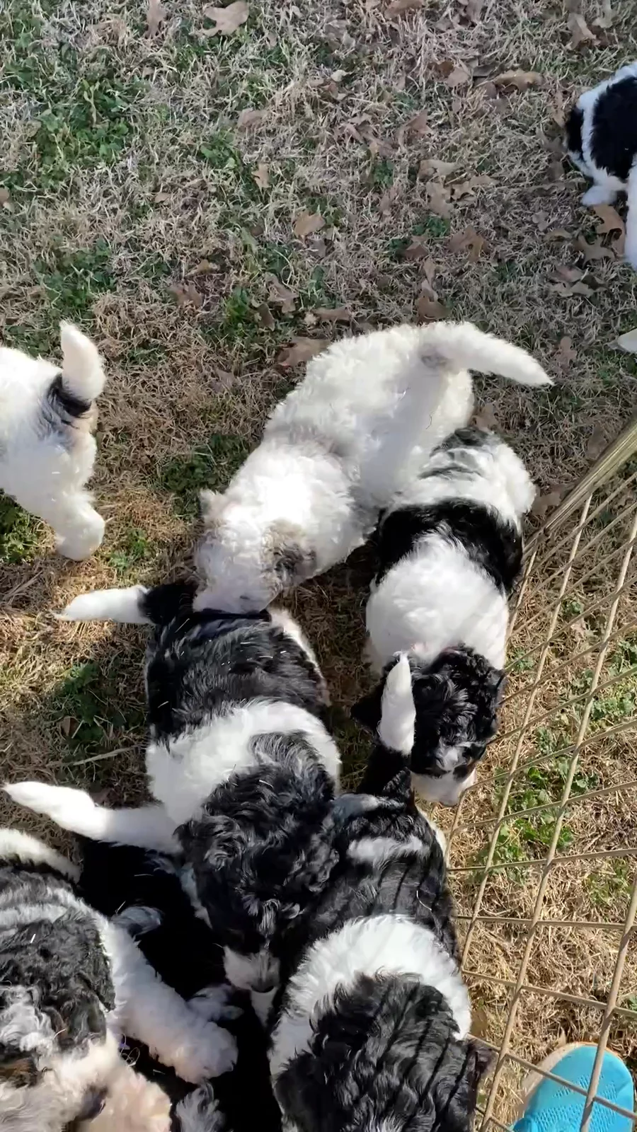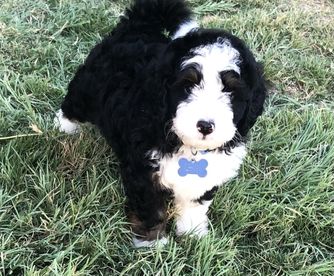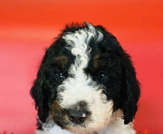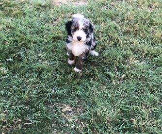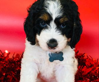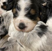 Our Bernedoodle puppies include tri-color and merle. Shihpoo puppies include merle, liver, black white and silver, and black and white. Colors will vary depending on the parent dogs.
