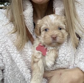 Puppy prices include a $500 non-refundable deposit and between $1,000 - $2,300 final payment, before taxes & fees.
