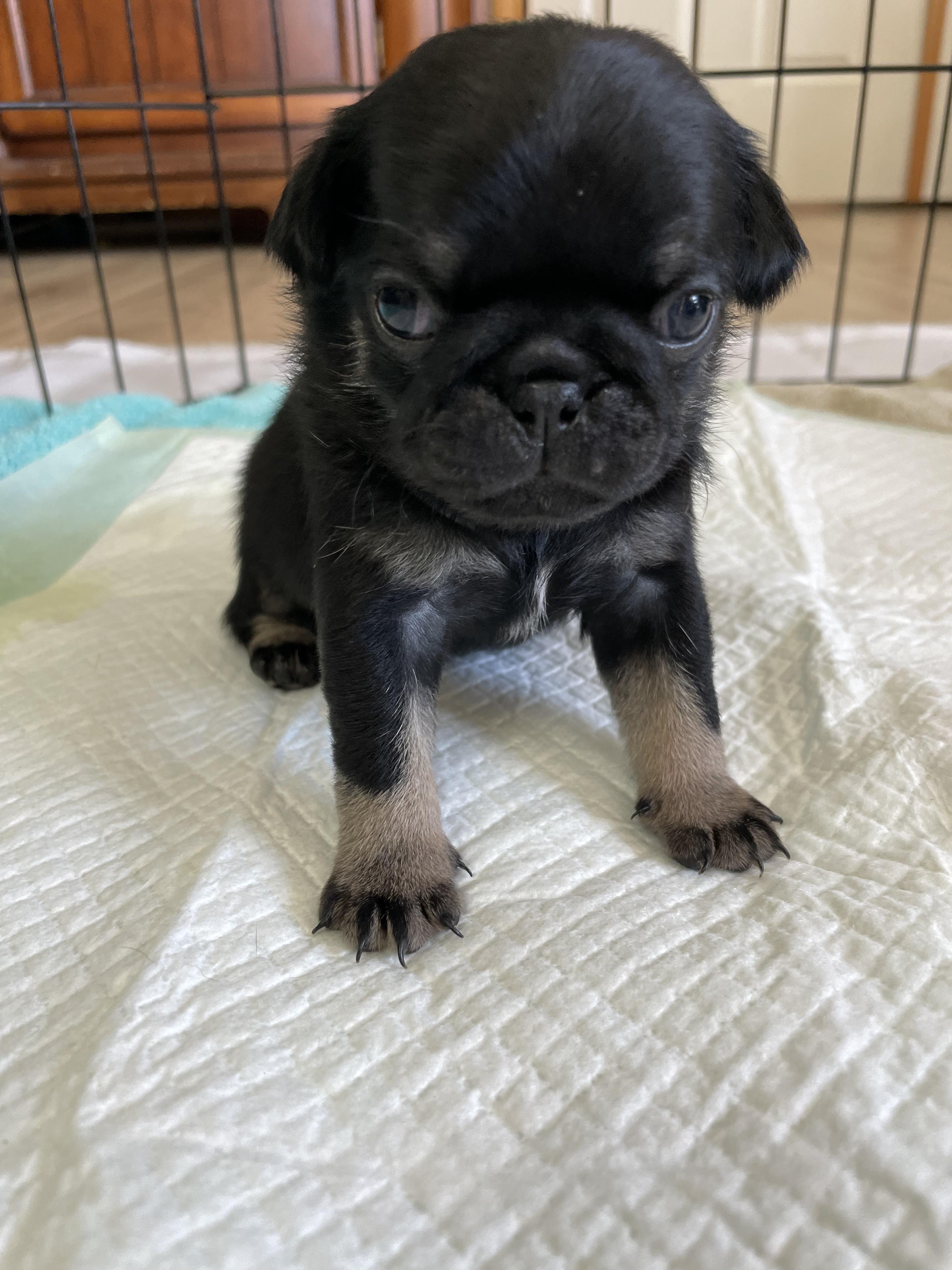 Penelope is a female Pug. Carefully selected as a great representative of her breed, Allison decided to make her part of their program. Allison has passed Good Dog’s screening process, which involved a review of their breeding practices, environment, and the mental and physical health of their dogs.