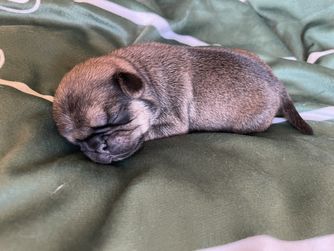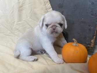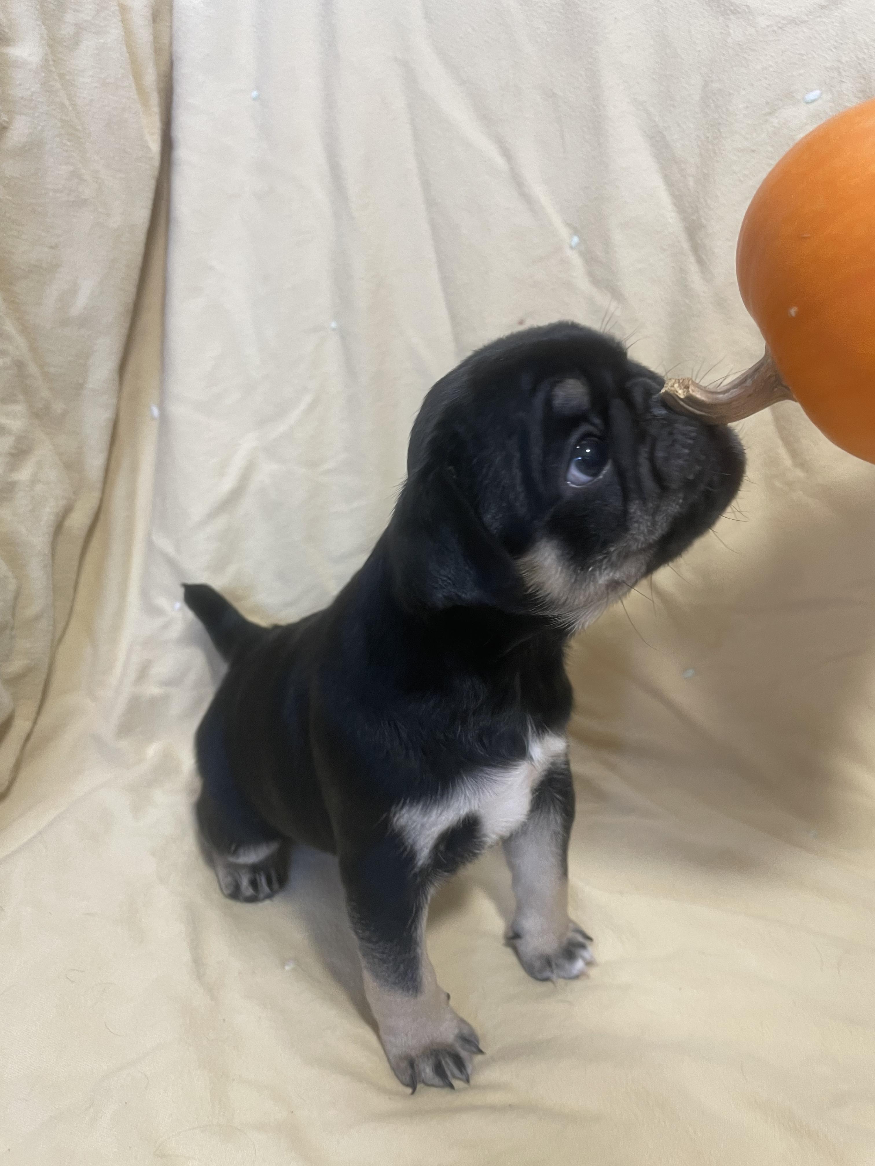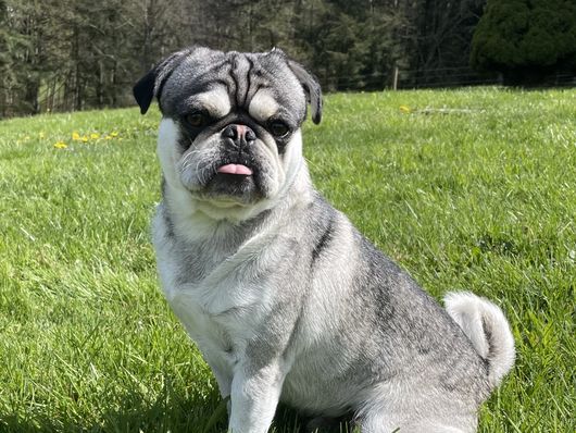 Catfish is a male Pug. Carefully selected as a great representative of his breed, Allison decided to make him part of their program. Allison has passed Good Dog’s screening process, which involved a review of their breeding practices, environment, and the mental and physical health of their dogs.