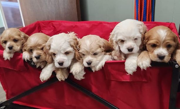 Our puppies include red and white, buff, and buff and white. Colors will vary depending on the parent dogs.