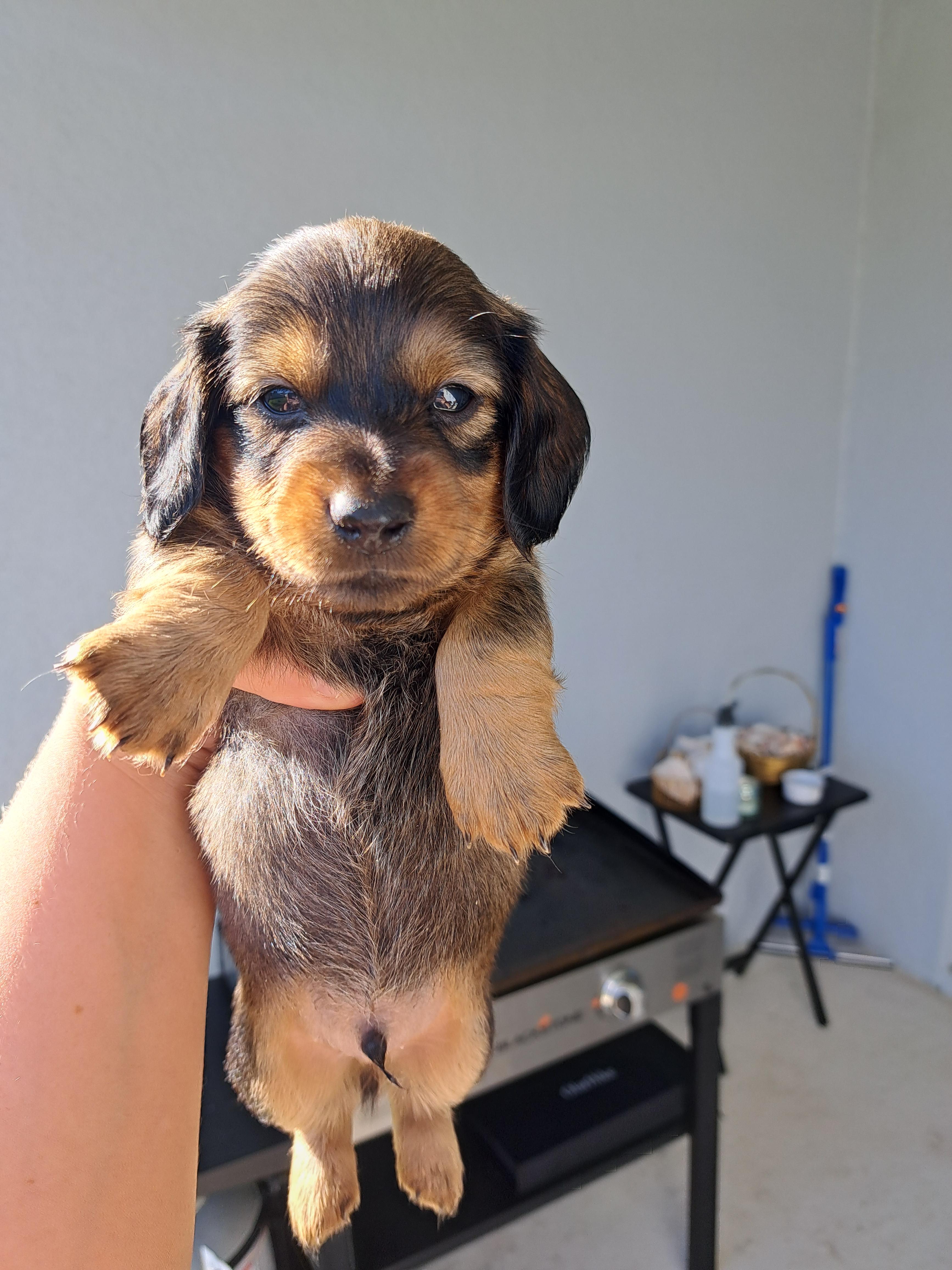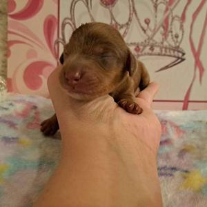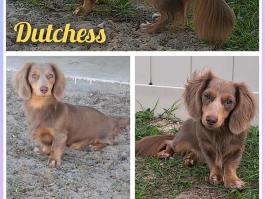 Dutchess is a female Dachshund. Carefully selected as a great representative of her breed, Crystal decided to make her part of their program. Crystal has passed Good Dog’s screening process, which involved a review of their breeding practices, environment, and the mental and physical health of their dogs.