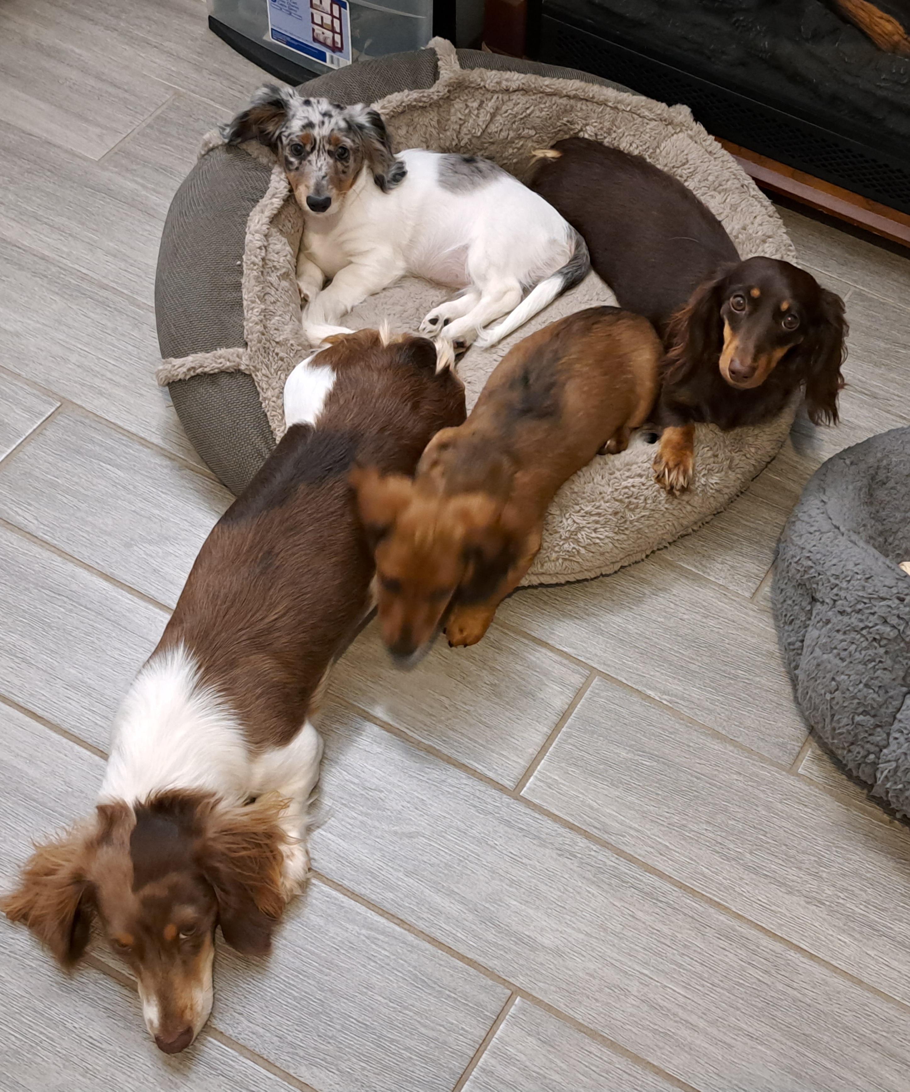 Jasper is a male Dachshund. Carefully selected as a great representative of his breed, Crystal decided to make him part of their program. Crystal has passed Good Dog’s screening process, which involved a review of their breeding practices, environment, and the mental and physical health of their dogs.