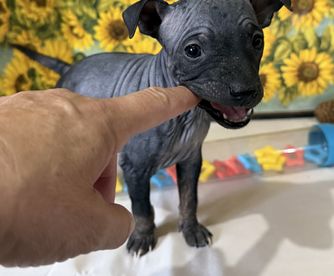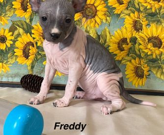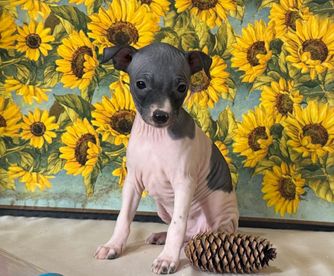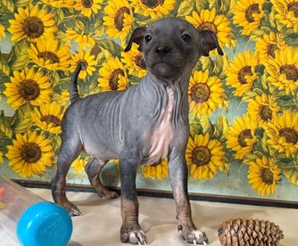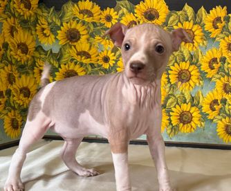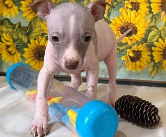 Our puppies have hairless coats. Coat types may vary depending on the parent dogs.