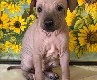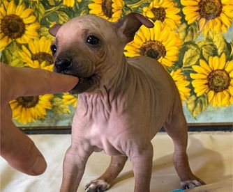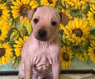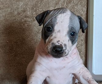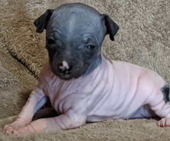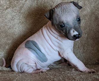 Our puppies have hairless coats. Coat types may vary depending on the parent dogs.