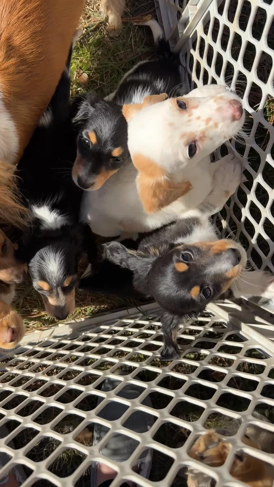 It’s been a whirlwind of a week! The puppies are all still doing great! Momma is starting to fuss at them when they come try to nurse now. We spent a long while outside yesterday since we will be cooped up inside the next several days due to weather. One week left! Please get with me this week to arrange pick ups for next Saturday!