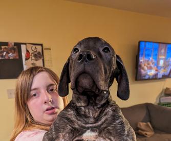 Syrinx is a female Mastiff. Carefully selected as a great representative of her breed, Amber decided to make her part of their program. Amber has passed Good Dog’s screening process, which involved a review of their breeding practices, environment, and the mental and physical health of their dogs.