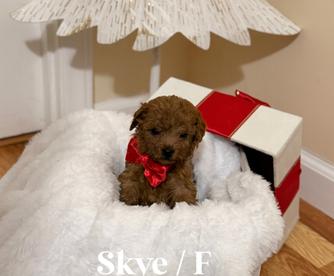 Our Goldendoodle puppies include apricot and red. Shihpoo puppies include gold and white and black and white. Poodle puppies are red. Colors will vary depending on the parent dogs.