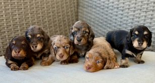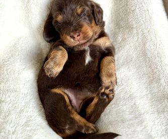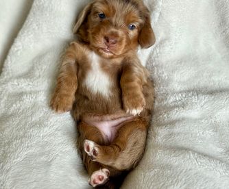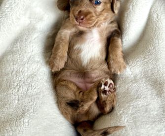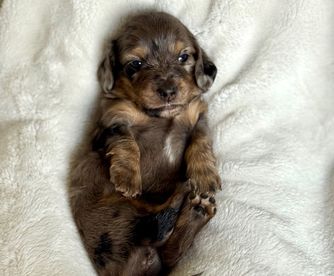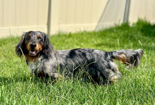 I'm Kendall, the breeder behind Gem State Mini Dachshunds located in Idaho. Currently, we have two active breeding dogs - Remmy, a male Black & Tan Dapple and Peach, an ee Cream Brindle female. Both Remmy & Peach are AKC registered, Embark tested and OFA/CHIC for CAER Eyes, Patellar Luxation and Basic Cardiac. We prioritize health and temperament over color in our puppies.