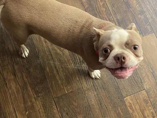 Cooper is a male Boston Terrier. Carefully selected as a great representative of his breed, Sabrina decided to make him part of their program. Sabrina has passed Good Dog’s screening process, which involved a review of their breeding practices, environment, and the mental and physical health of their dogs.