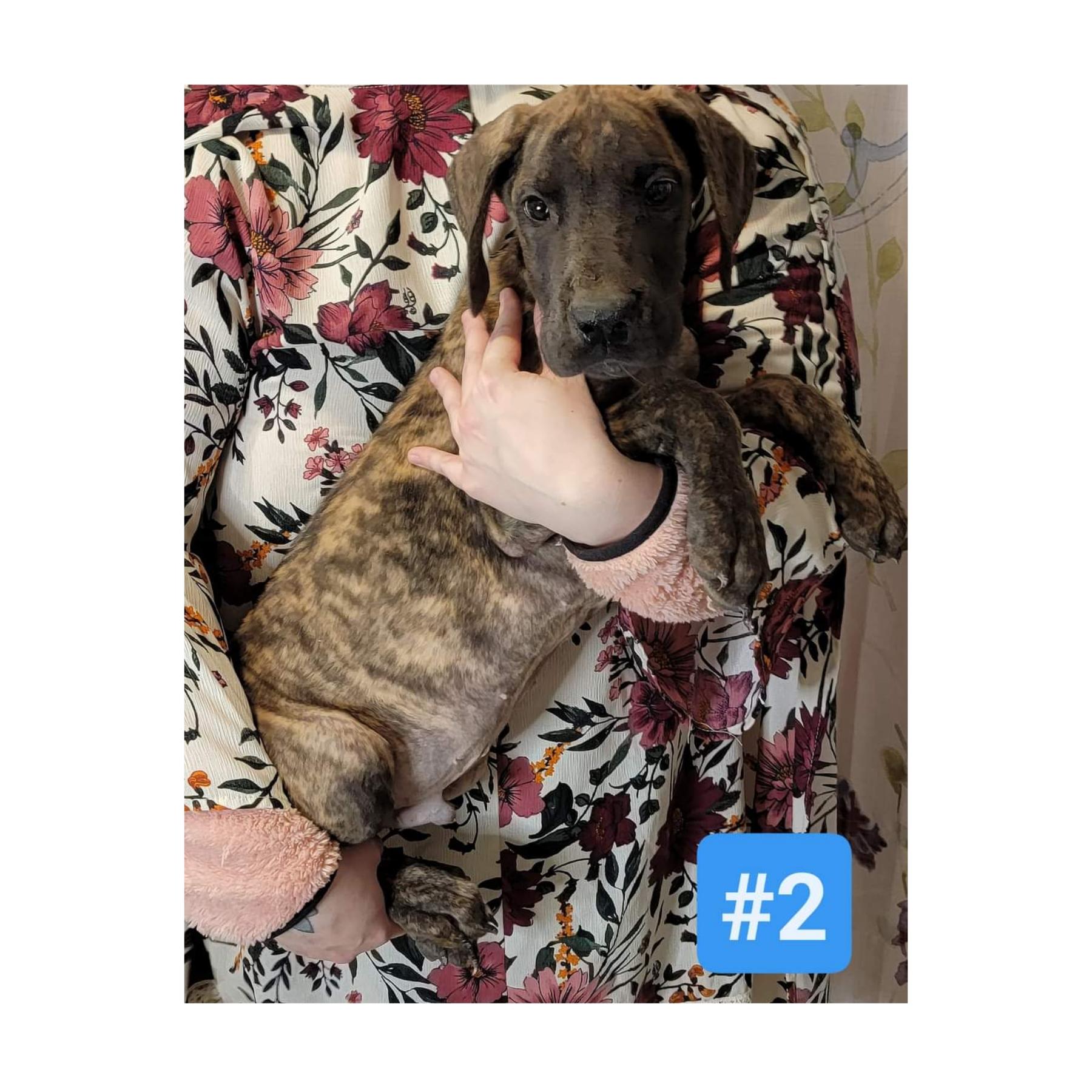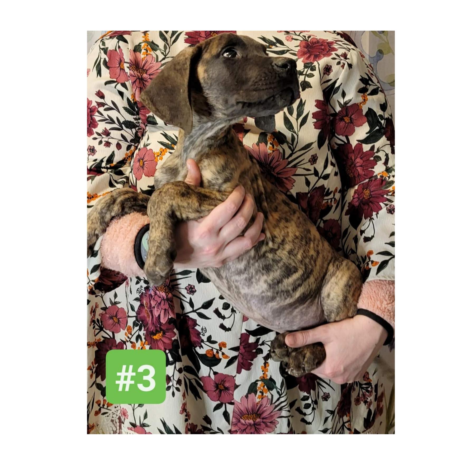 Our puppies include brindle, fawn, harlequin, and merle. Colors will vary depending on the parent dogs.