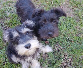 Our puppies include salt and pepper and black and silver. Colors will vary depending on the parent dogs.