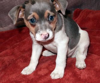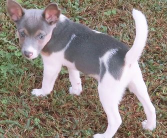 Our Alaskan Klee Kai puppies include red and white and gray and white. Rat Terrier puppies include fawn white and tan, white and apricot, blue white and tan, white, chocolate and tan, white and blue, and black tan and white. Colors will vary depending on the parent dogs.