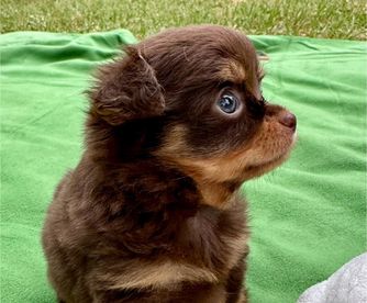 Chocolate and tan gorgeous double coated long haired baby that is my perfect companion Also has a chic