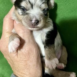 Leslie was wonderful to work with. I placed a deposit on one of her puppies a couple days after birth. She kept me updated weekly until she was ready. She even drove part way to meet me at 4pm on New Year’s Eve so that I could get home with her before dark. Pixel has an excellent personality. She’s very social. She likes to swim. I can’t say enough good things about Pixel & the service Leslie provided. Pixel is the perfect addition to our family & she is my sweetie!