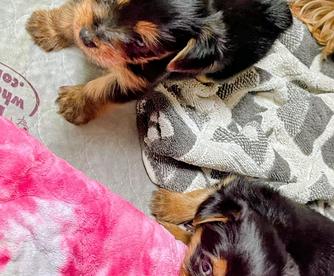 Our Whippet puppies include blue brindle and fawn brindle. Yorkshire Terrier puppies are black and tan. Colors will vary depending on the parent dogs.