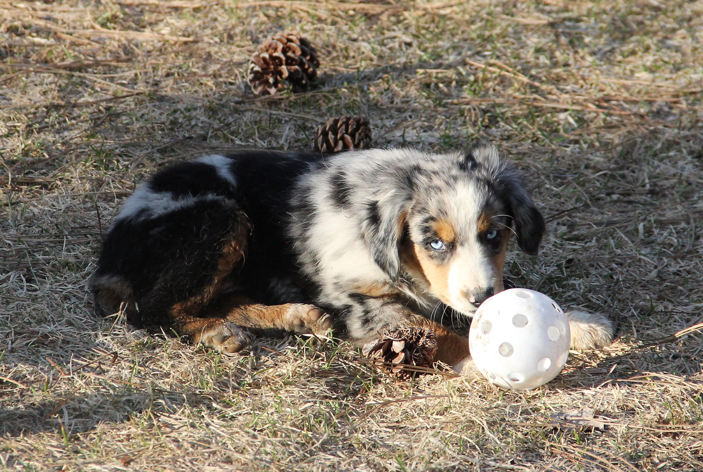 Nash came to us from 3K Aussies in Texas. Both of Nash's parents are ASDR Elite Grand Champions! He has a great personality, loves attention and will play ball all day!