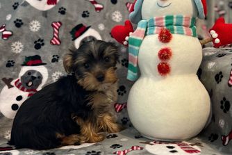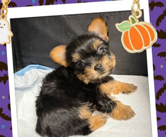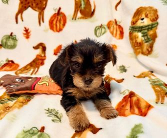 Our Maltese puppies include white, white and tan, and white and lemon. Yorkshire Terrier puppies are black and tan. Colors will vary depending on the parent dogs.