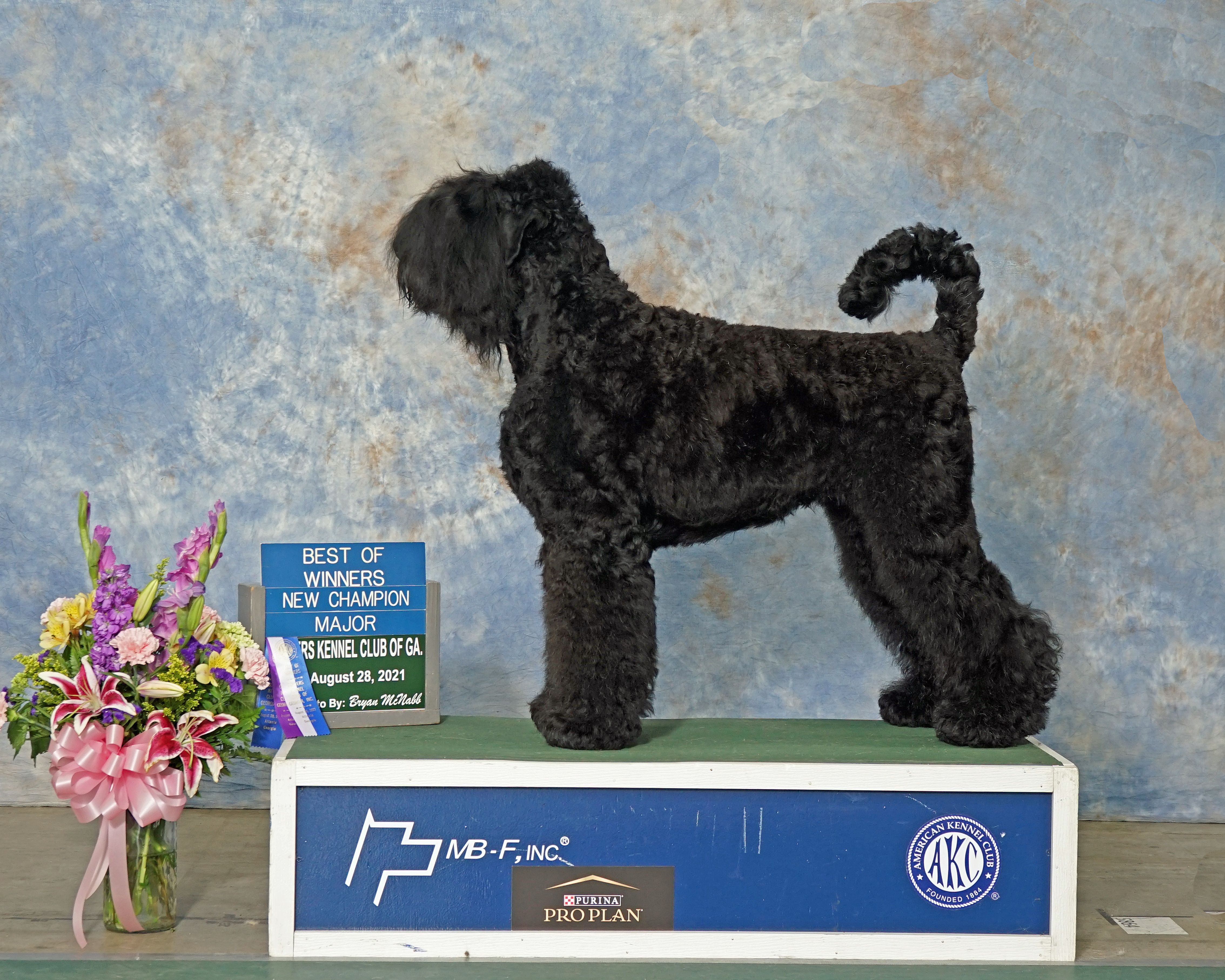 Izza is a female Black Russian Terrier. Carefully selected as a great representative of her breed, Sergey decided to make her part of their program. Sergey has passed Good Dog’s screening process, which involved a review of their breeding practices, environment, and the mental and physical health of their dogs.