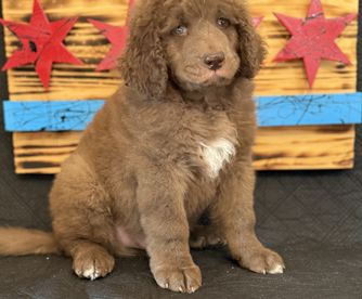 Leo is a male Saint Berdoodle. Carefully selected as a great representative of his breed, Kim decided to make him part of their program. Kim has passed Good Dog’s screening process, which involved a review of their breeding practices, environment, and the mental and physical health of their dogs.