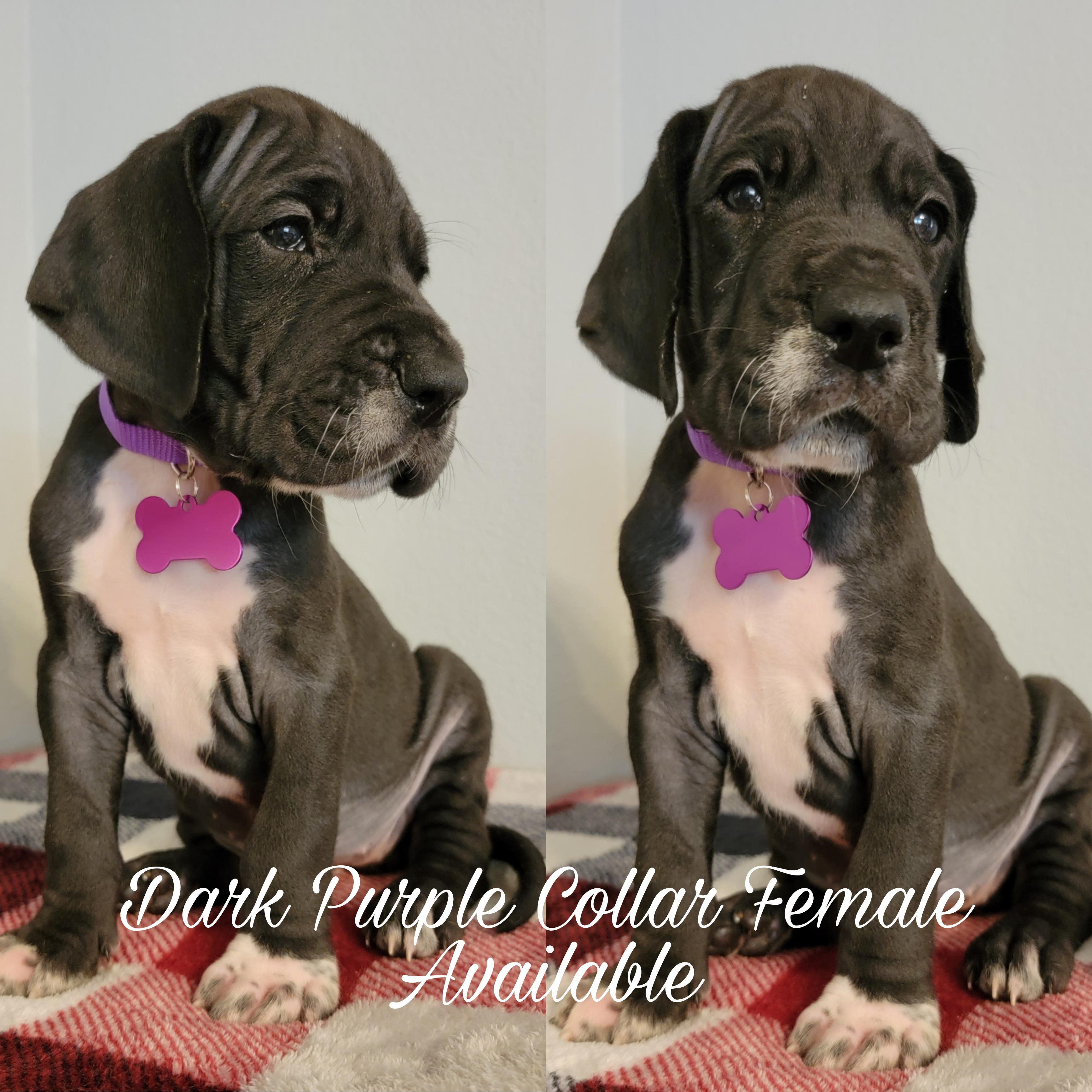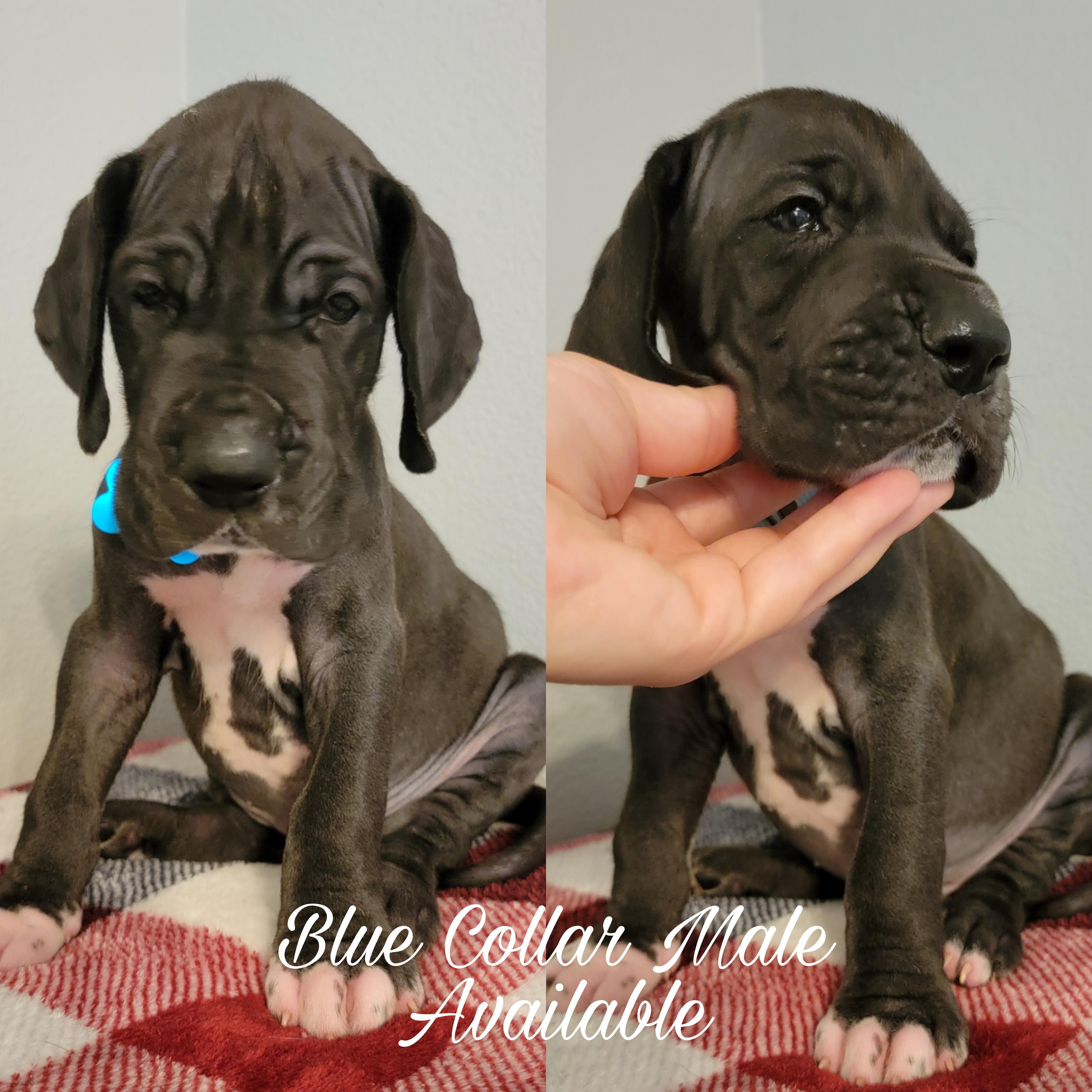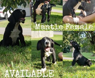 Our puppies include harlequin, mantle, merle, and black. Colors will vary depending on the parent dogs.