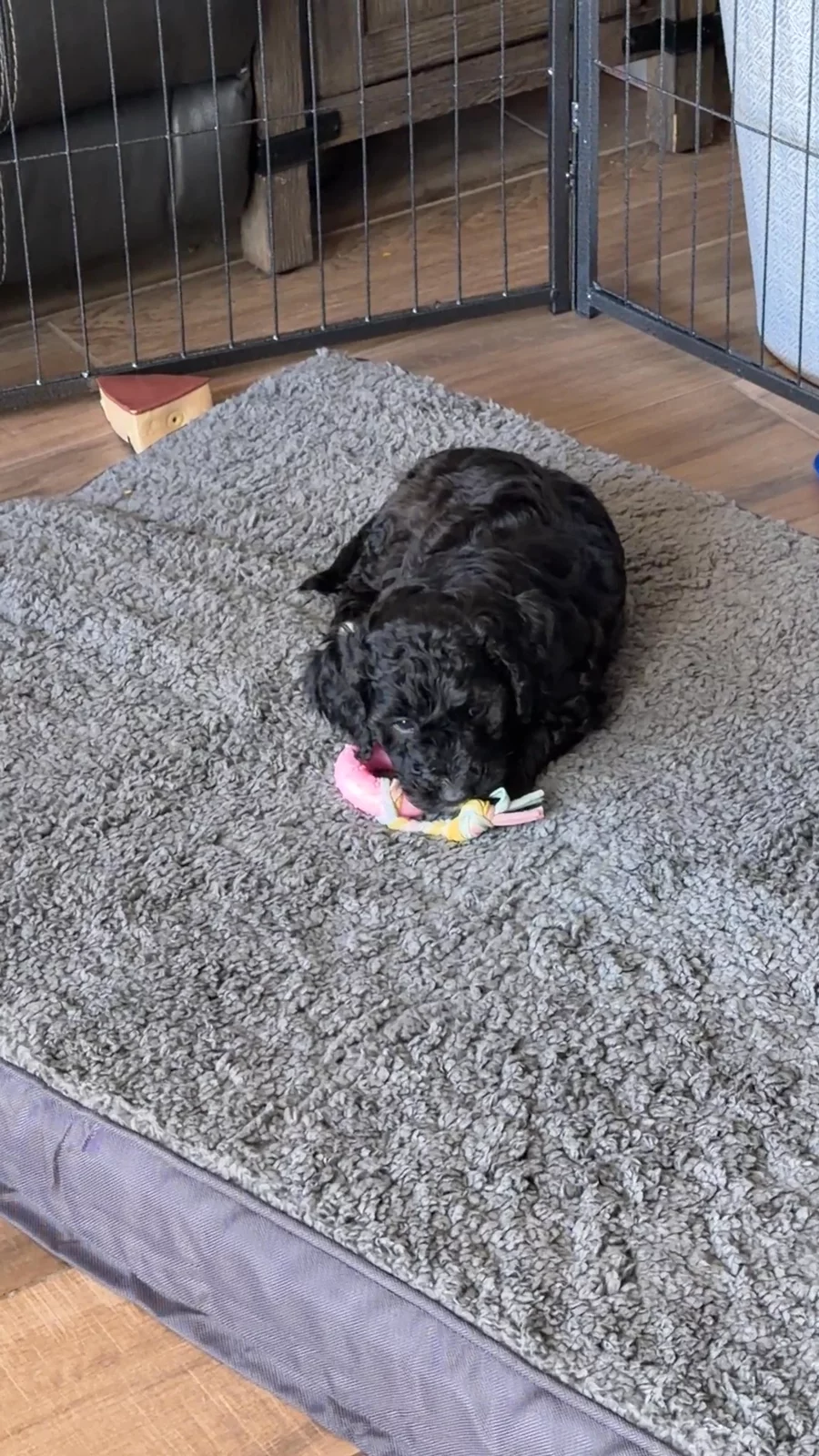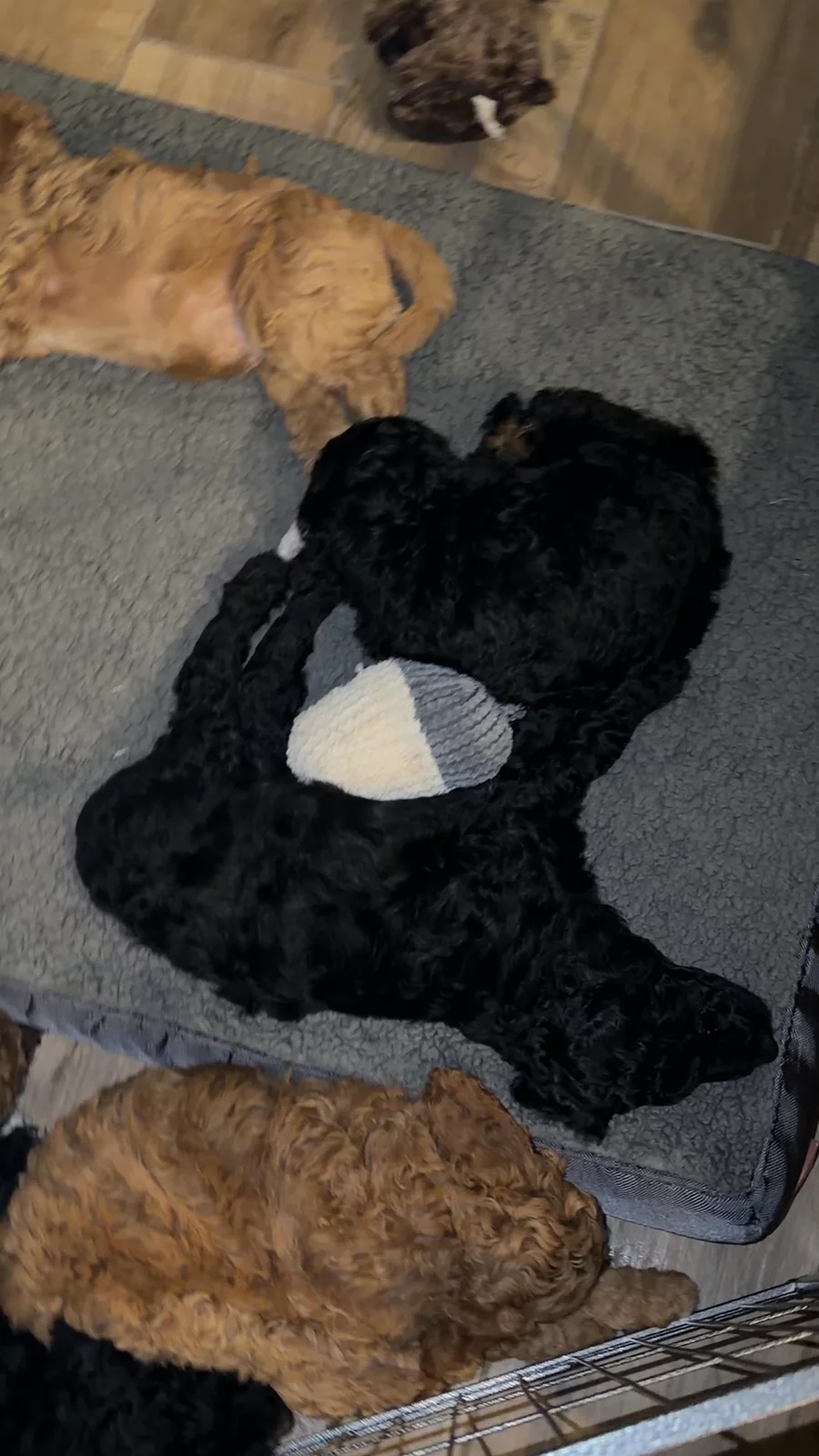 Tigger is such a loving, playful dog, and he absolutely lives for cuddle time. Say the words and he’s in your lap with his head on your chest, completely content. He has a soft, no-shed coat and a gentle, people-focused personality that makes him easy to fall in love with. He was DNA tested for all 274 conditions. He was a carrier of one variant, but because Ellie isn’t a carrier, every puppy in this litter is completely clear. This is his only litter, since he has been fixed, and these puppies already show so much of his sweet, calm nature.
