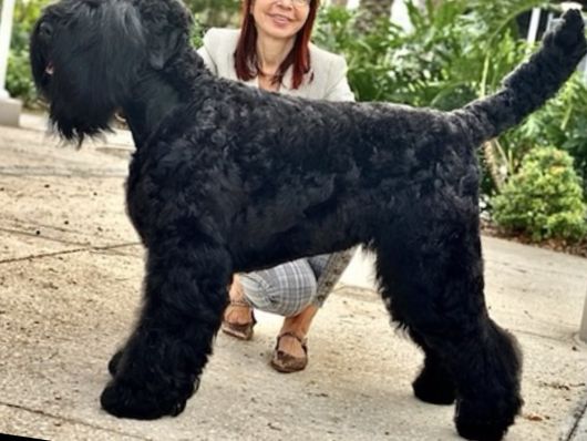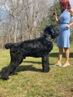 ZEUS is a male Black Russian Terrier. Carefully selected as a great representative of his breed, Tatiana decided to make him part of their program. Tatiana has passed Good Dog’s screening process, which involved a review of their breeding practices, environment, and the mental and physical health of their dogs.