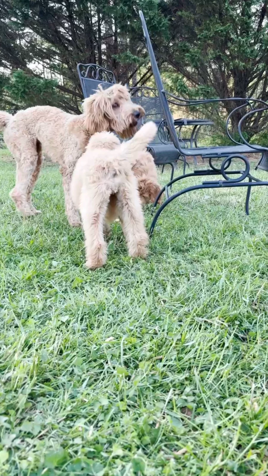 Our precious puppies are doing great at crate training. They are doing great at going potty outside, and we are working with them on basic training.