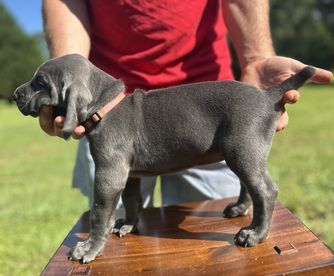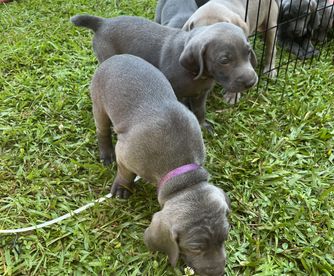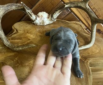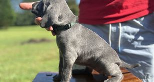 Our puppies include silver gray, gray, and blue. Colors will vary depending on the parent dogs.