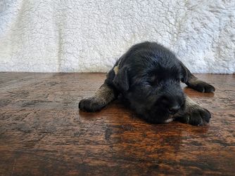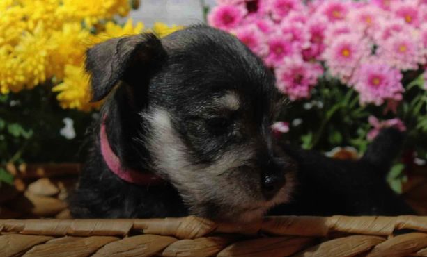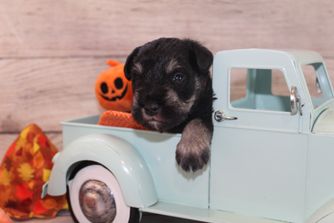 Our puppies include black and salt and pepper. Colors will vary depending on the parent dogs.