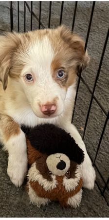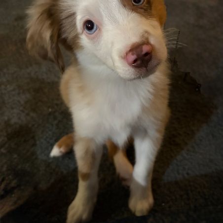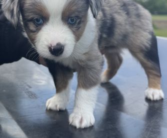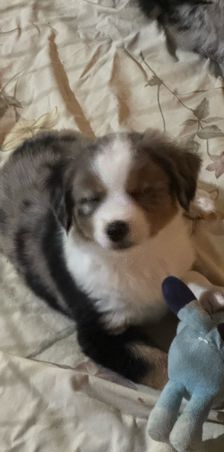 Winnie is a toy Australian Shepard. She is ASDR registered. Winnie is very smart, and loving. Her offspring are smart as well. They learn commands in the first week at their new homes.