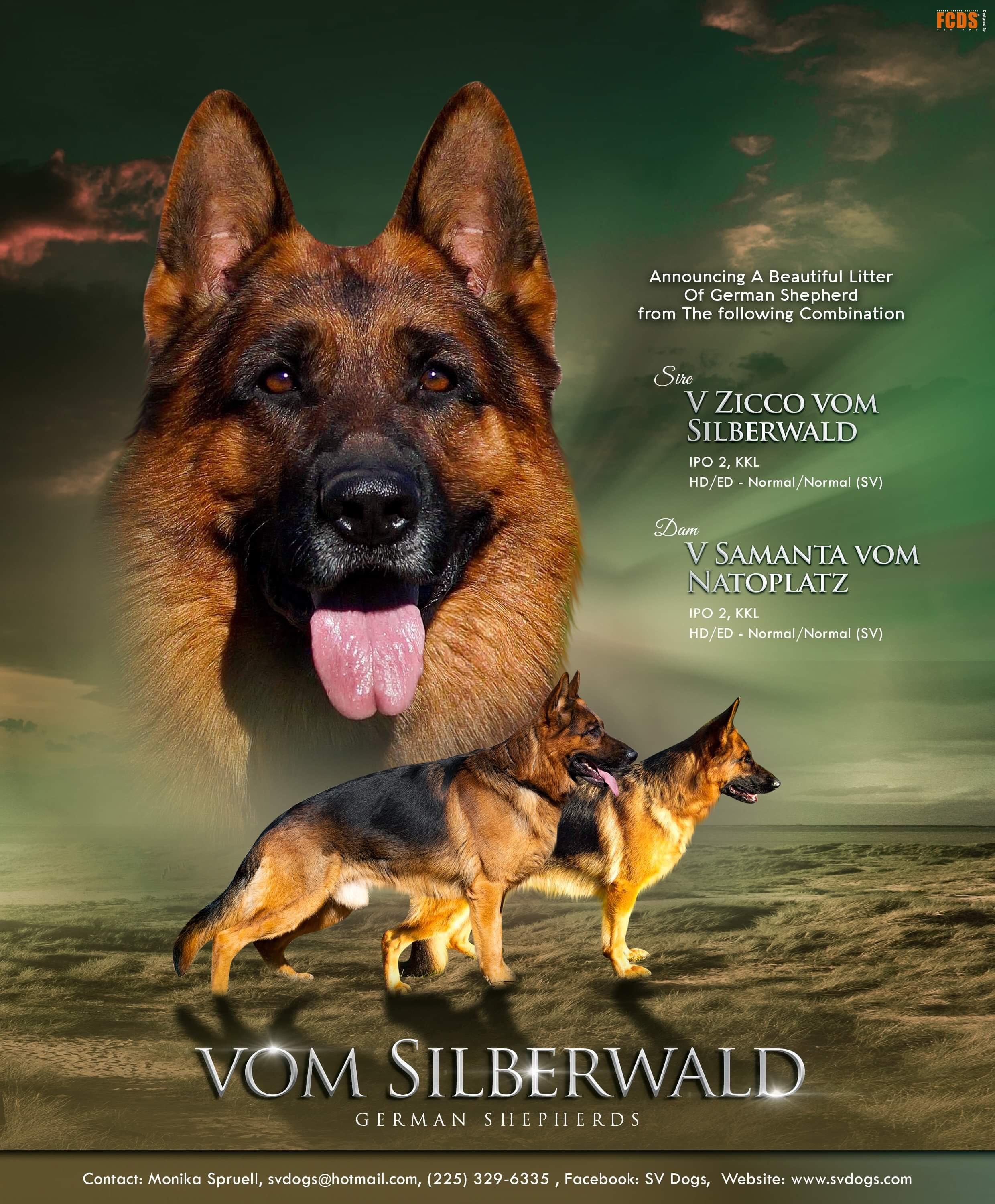I'm Monika S., the breeder behind German Shepherds vom Silberwald located in Slaughter, LA. We strive to provide dogs with excellent temperament and health, bred to German standards and are part of the family.