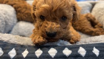 Oliver is a red maltipoos that weights 3lbs. He’s the sweetest boy