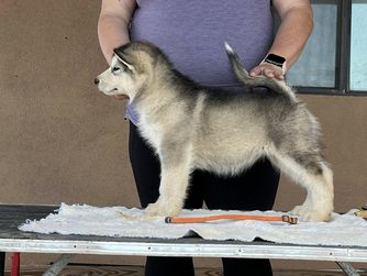 I'm Julie E., the breeder behind Ghost Dance Alaskan Malamutes located in Alpine, TX. We breed standard Alaskan malamutes, working them in harness and competing with them in conformation. Basic home requirement is a sizable fenced in yard. Must complete our full application process, including photos of your home/yard and possibly a home visit. Please expect to be on a waiting list for one of of puppies as we don't breed many litters and demand for our puppies is high. We have owned and bred malamutes for over 40 years and are happy to pass on our wealth of knowledge and will be a resource of information for the life of your puppy. We are official Alaskan Malamute Club of America Mentors, so please feel free to contact us with any questions about this wonderful breed. Life is always better when shared with an Alaskan Malamute.