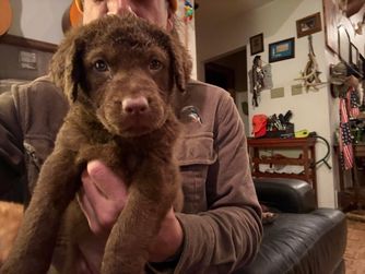 Riffle is a female Chesapeake Bay Retriever. Carefully selected as a great representative of her breed, Stephen decided to make her part of their program. Stephen has passed Good Dog’s screening process, which involved a review of their breeding practices, environment, and the mental and physical health of their dogs.