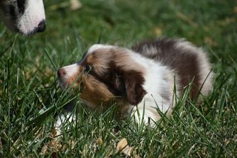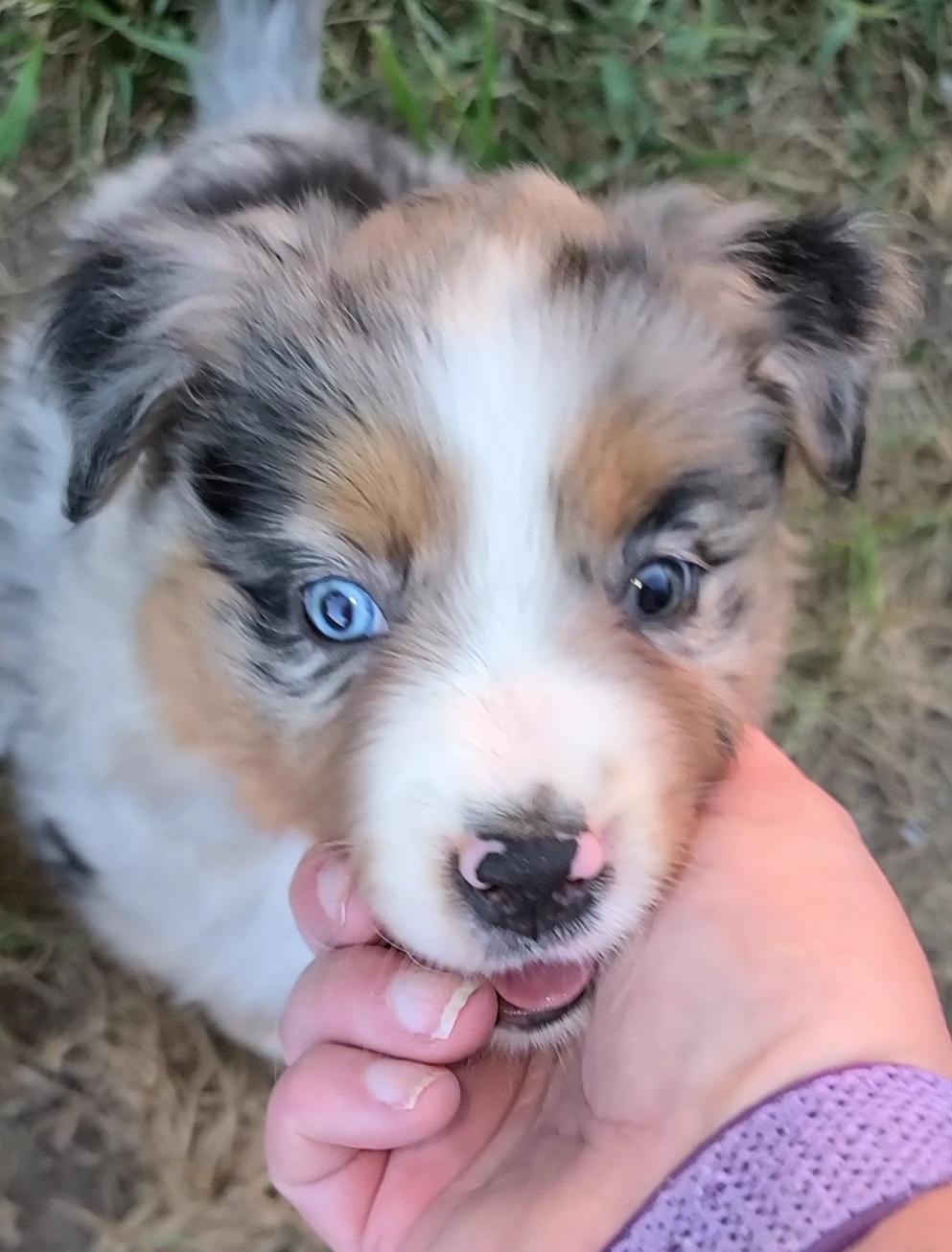I'm Kelly S., the breeder behind Ghost Eye Aussies located in Kenesaw, NE. We are breeders who do everything we can to better the breed and ensure our dogs and puppies are able to get the very most out of life. We breed ASCA generic tested standard Australian Shepherds. The goal we set and which I believe is still the most important, is to produce healthy puppies that make a well-rounded character in an adult dog.