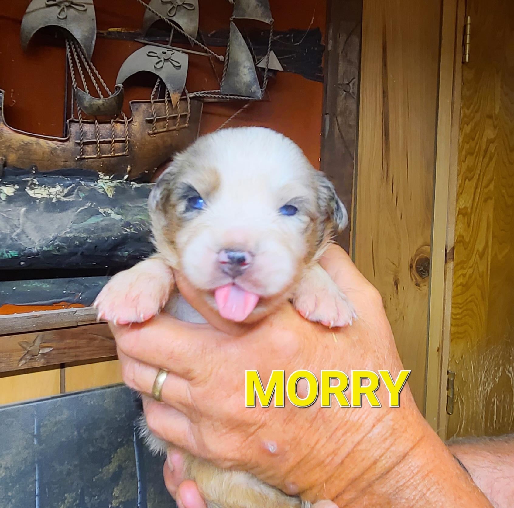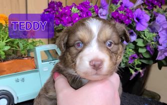 Our puppies include black, red merle, blue merle, and red. Colors will vary depending on the parent dogs.