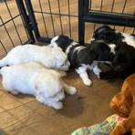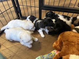 Our puppies include tri-color, black and white, and white. Colors will vary depending on the parent dogs.
