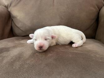 Adding videos to site. Puppies are 2 weeks old. Eyes opening. Beginning to go from scooting on their bellies to getting up on their legs.. a little wobbly and tipsy! All are gaining weight well, and being so so cute!!