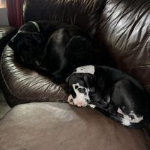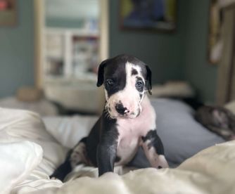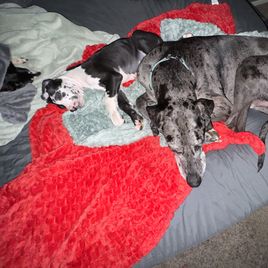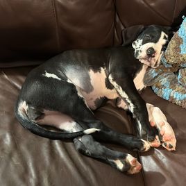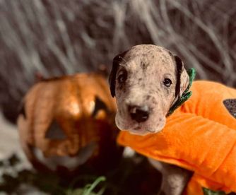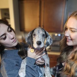 I'm Dahlia C., the breeder behind Gigantes de Cervantes located in Salem, OR. We have 2 female danes in our program. They both live with us, in our home. We breed to maintain strong lines within breed standards. But above all, we care immensely on breeding proper Dane temperament. All our pups will go home trained with Early Scent Introduction (ESI), Early Neurological Stimulation (ENS), and kennel training. This will help ensure the best opportunity to have a well tempered, intelligent, quick learning pup. It also insures our pups have the BEST possible start to life with us and beyond.