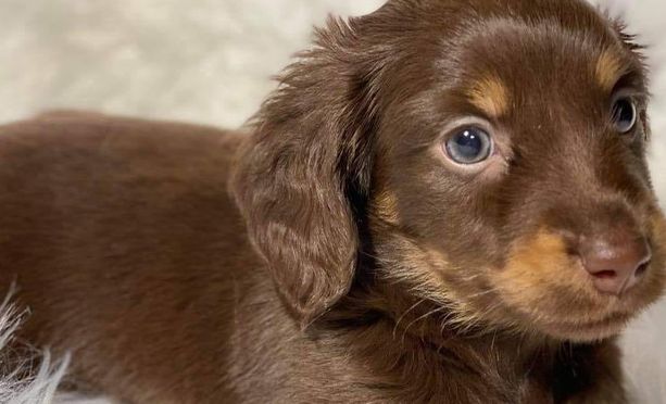 Quinn is an AKC Chocolate and Tan, long haired Dachshund. He is a sweet, good tempered dog. Up to date on all shots. Health tested.