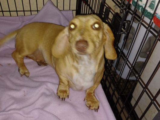 Shelby is a female Dachshund over 1 year old. Carefully selected as a great representative of her breed, G decided to make her part of their program. G has passed Good Dog’s screening process, which involved a review of their breeding practices, environment, and the mental and physical health of their dogs.