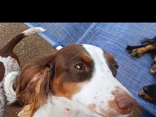 Gidget is a Ch & Tan who throws light Red, shaded Reds, and Creams. Very gentle dog. Loveable. UTD on shots.
