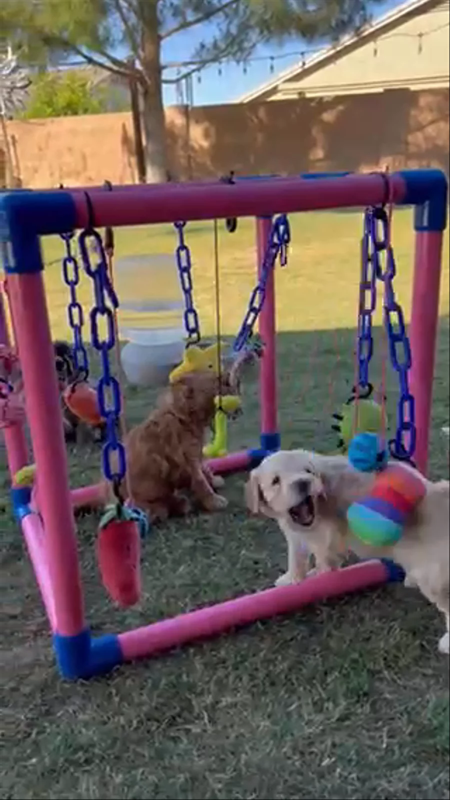The puppies love ❤️ the cooler weather- playtime with Mommy and solo w the tire on a rope 😍 Ready for their forever home 🏡 on Easter weekend 🐣!!