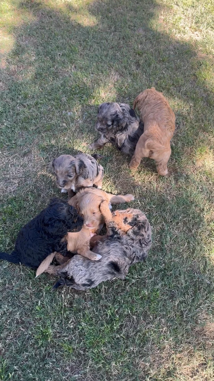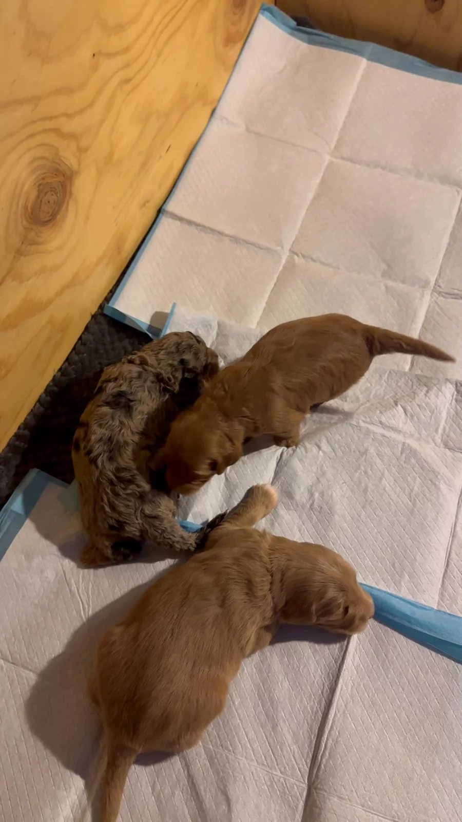 These are their puppies from their last litter- all coming outside to go to the bathroom at 6 weeks old fully trained 🥰!! Yours will be fully trained too when you take them to their forever home 🏡 ❤️