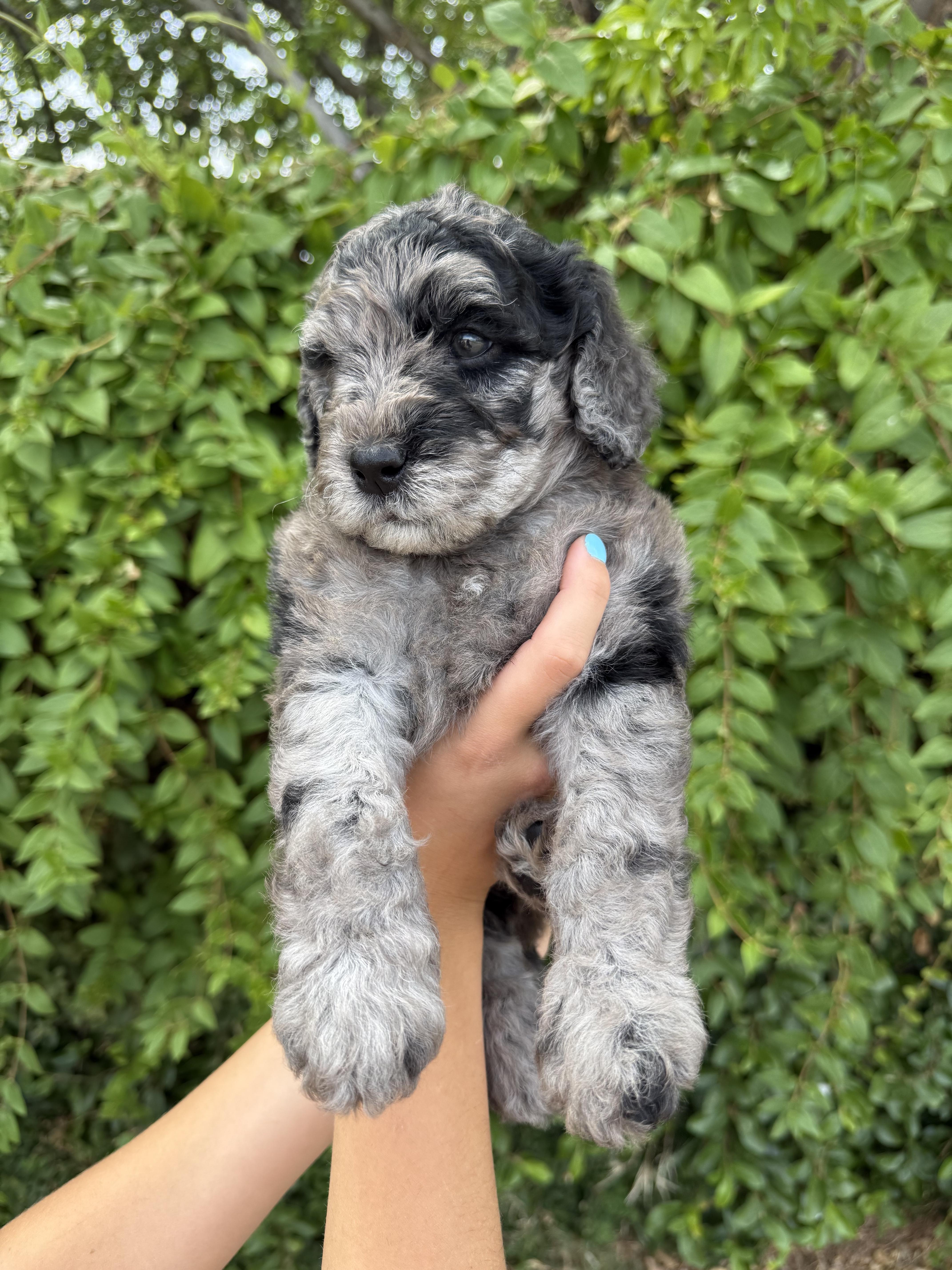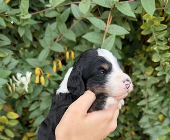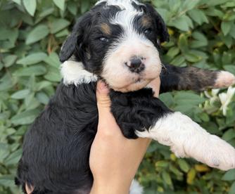 She carries the classic Bernedoodle traits we value most: intelligence, loyalty, and a laid-back, family-friendly temperament. She thrives on human companionship, gets along beautifully with other animals, and brings a joyful, steady presence into our home.