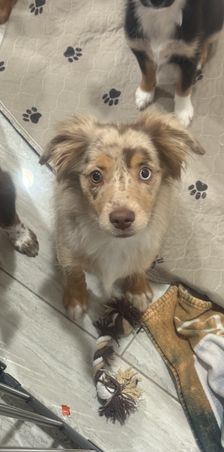 Our puppies include blue merle, black tri, red tri, and red merle. Colors will vary depending on the parent dogs.